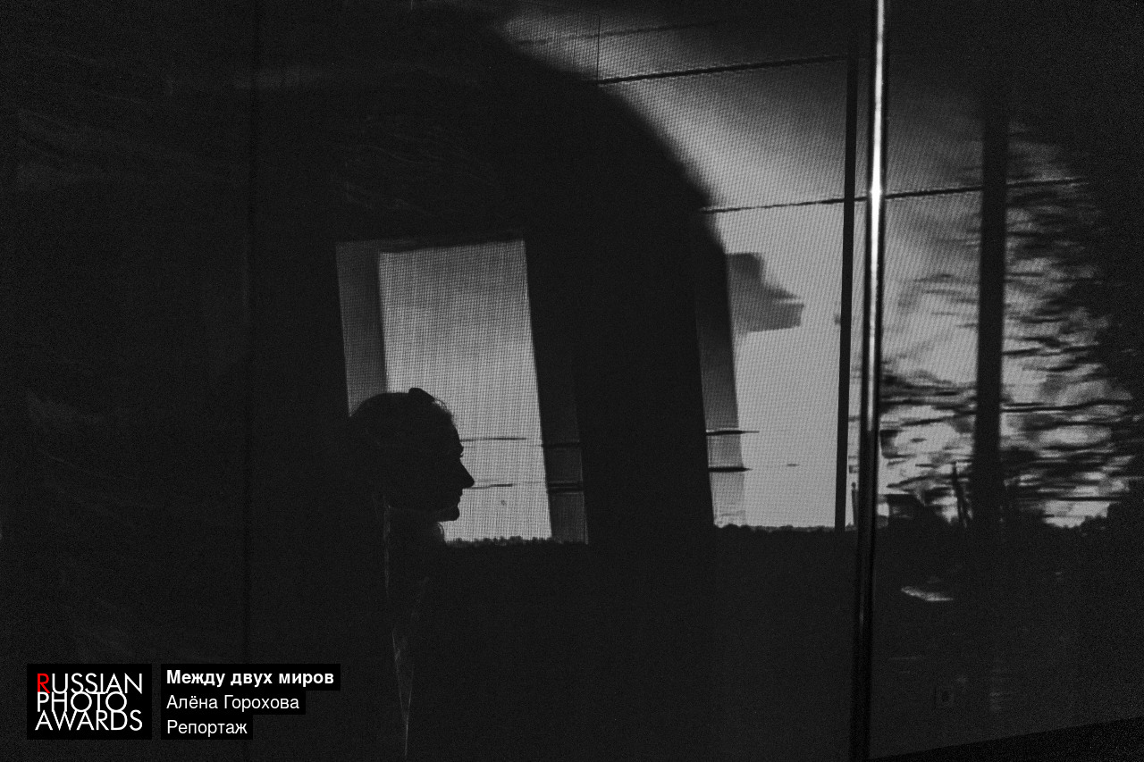 Фотография была снята во время посещения выставки. На стену одного из залов проецировалось изображение снятое из вагона поезда, в какой-то момент тень одной из посетительниц попала в окно этого поезда. Я сделала кадр.