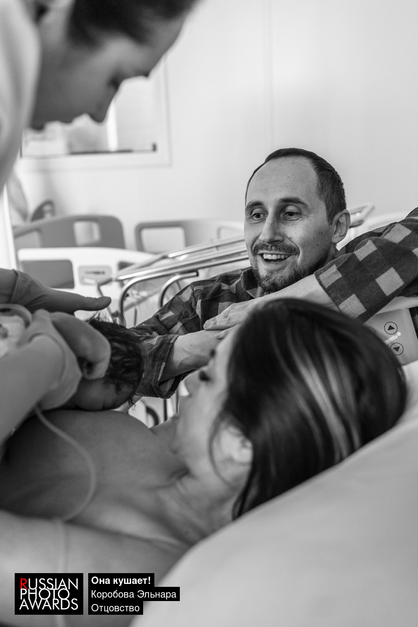 Момент первого прикладывания к груди, отражающий эмоции папы