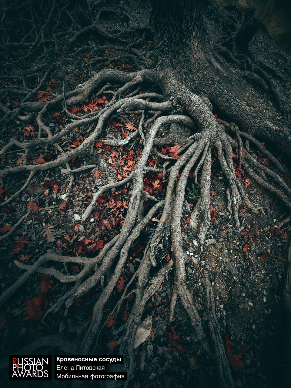 Корни дерева, подобно кровеносным сосудам, проникают в землю, обеспечивая растение питательными веществами и водой, точно так же, как артерии и вены транспортируют кровь..