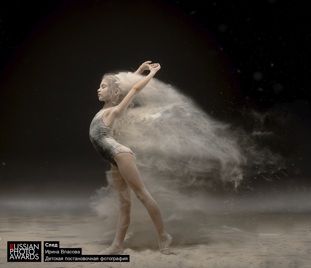 Кадр сделан в студии с применением муки. В кадре юная гимнастка Аленка