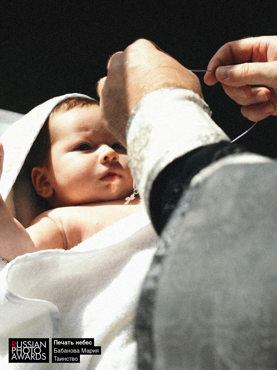 На фотографии запечатлен момент, когда на личике малышки отражается крестик, словно ангел соприкоснулся к ней крылом, даря благодать …
