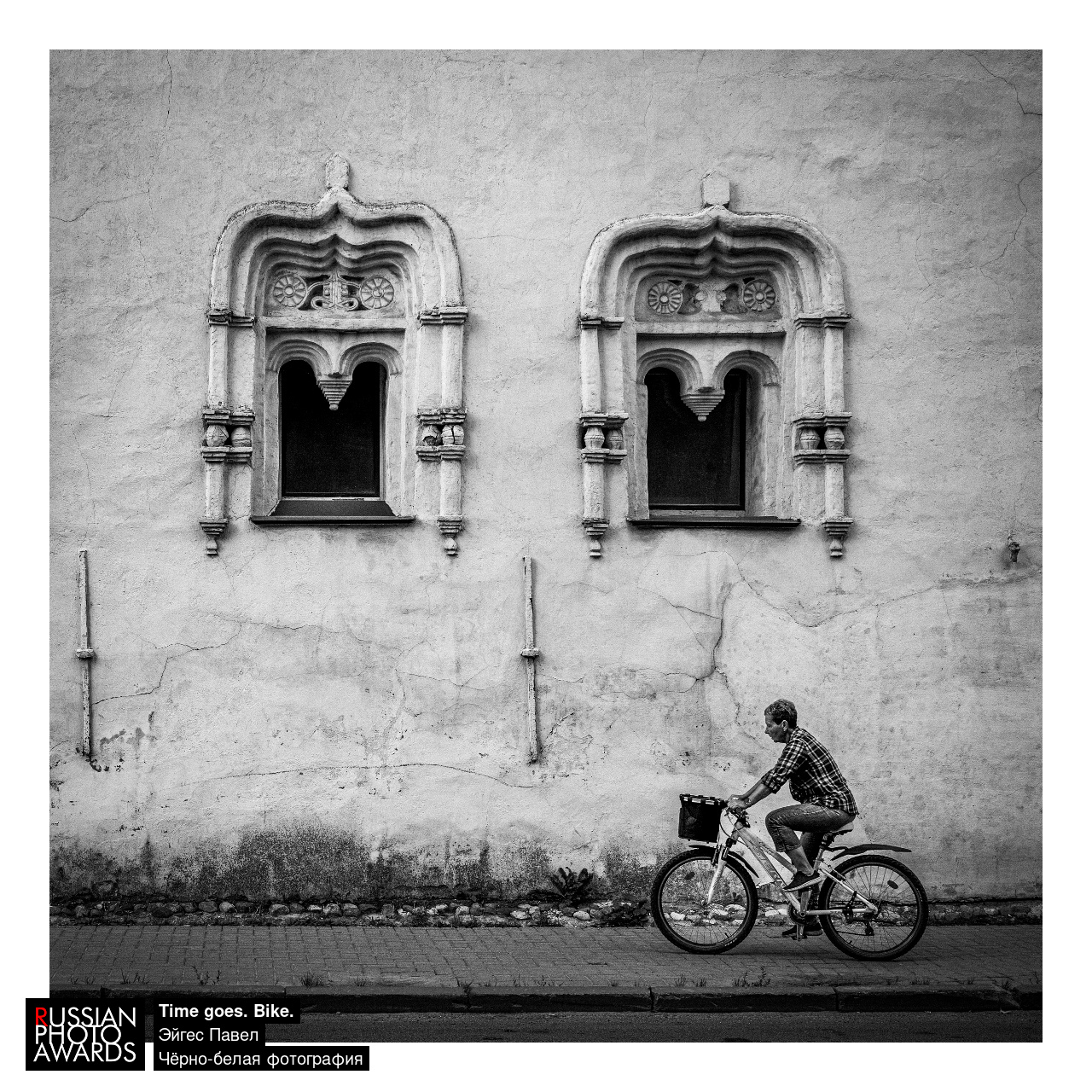 Женщина на велосипеде на фоне Палат Меншикова в Пскове.
