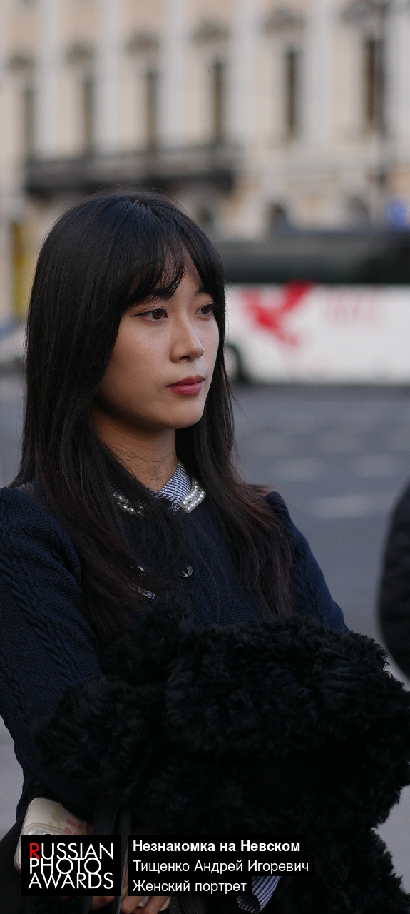 Увидел её на Невском проспекте в Санкт-Петербурге среди людей наблюдавших за игрой уличных музыкантов и не смог не сфотографировать.