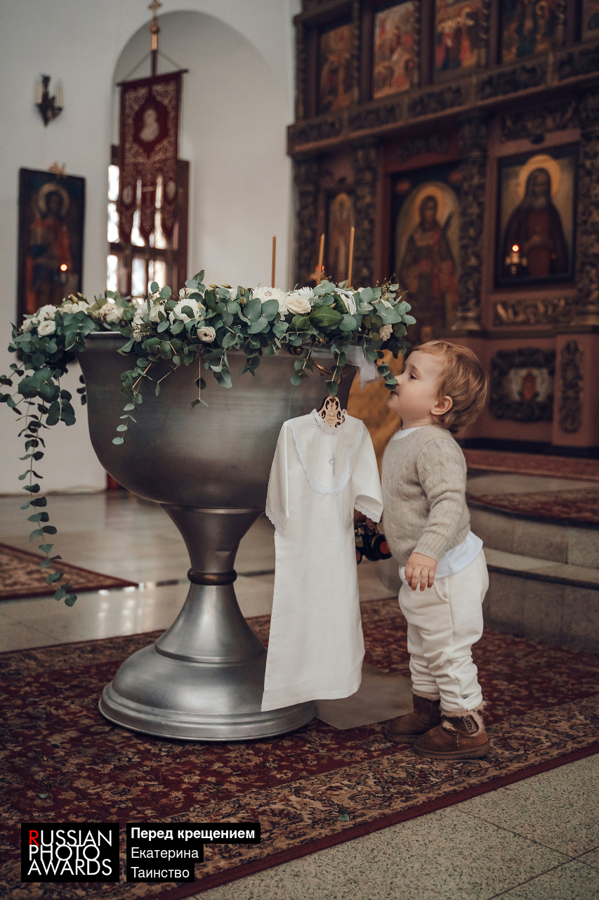 Перед крещением малыш подошёл к своей купели, непостановочный кадр