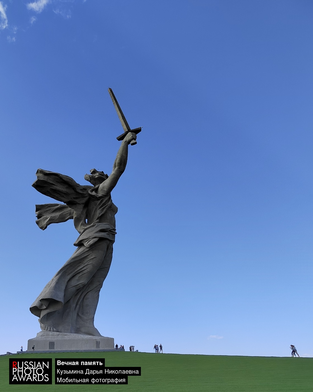 „Родина-мать зовёт!“ — вечная память, высеченная в камне. Величие прошлого отражено в каждом изгибе статуи, а спокойствие настоящего — в голубом небе и в зелёной траве у её ног.