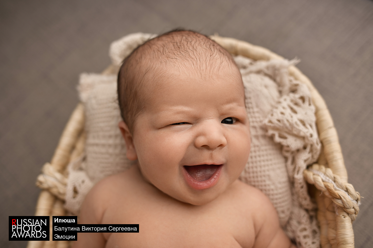 Фотограф новорожденных Виктория Балутина. На фото новорожденный Илюша показал нам свои первые эмоции.