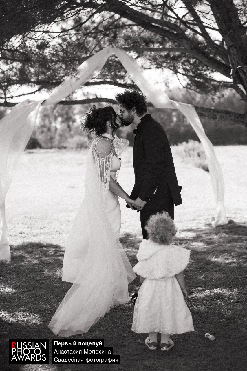 Во время выездной регистрации малышка никак не могла усидеть на месте. И во время самого главного момента, когда после обмена кольцами пара дарила друг другу первый "замужний" поцелуй, она зачарованными глазами наблюдала за этим стоя прямо перед ними