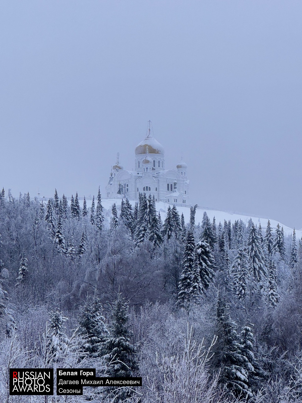 Белая Гора, Пермский край. Величаво возвышаеются золотые купола на фоне русской зимы