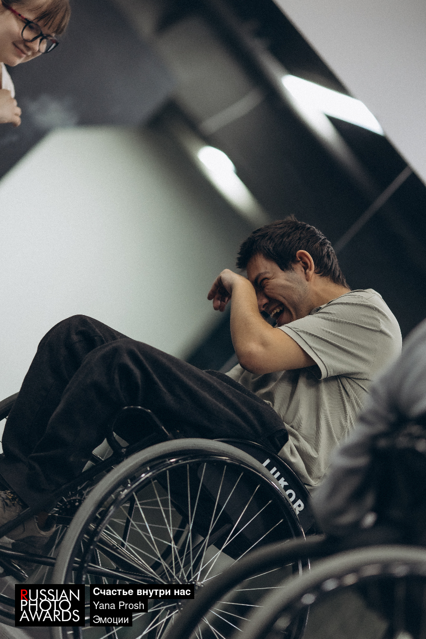 Кадр сделан в перерыве между прогоном танца на колясках. Ребята готовились к спектаклю, меня пригласили поснимать репортаж.