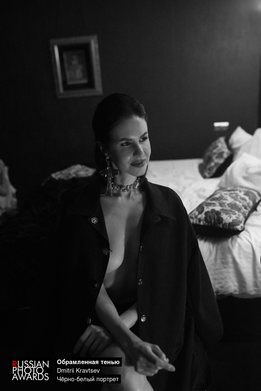 Расстёгнутый пиджак, изгиб тела, лёгкое дыхание ткани на коже. На шее - великолепное ожерелье, тускло отражающихся в скудном свете, в ухе - массивная подвеска, чей блеск лишь усиливает искренность образа: это не показ богатства, а игра с роскошью как с состоянием души.