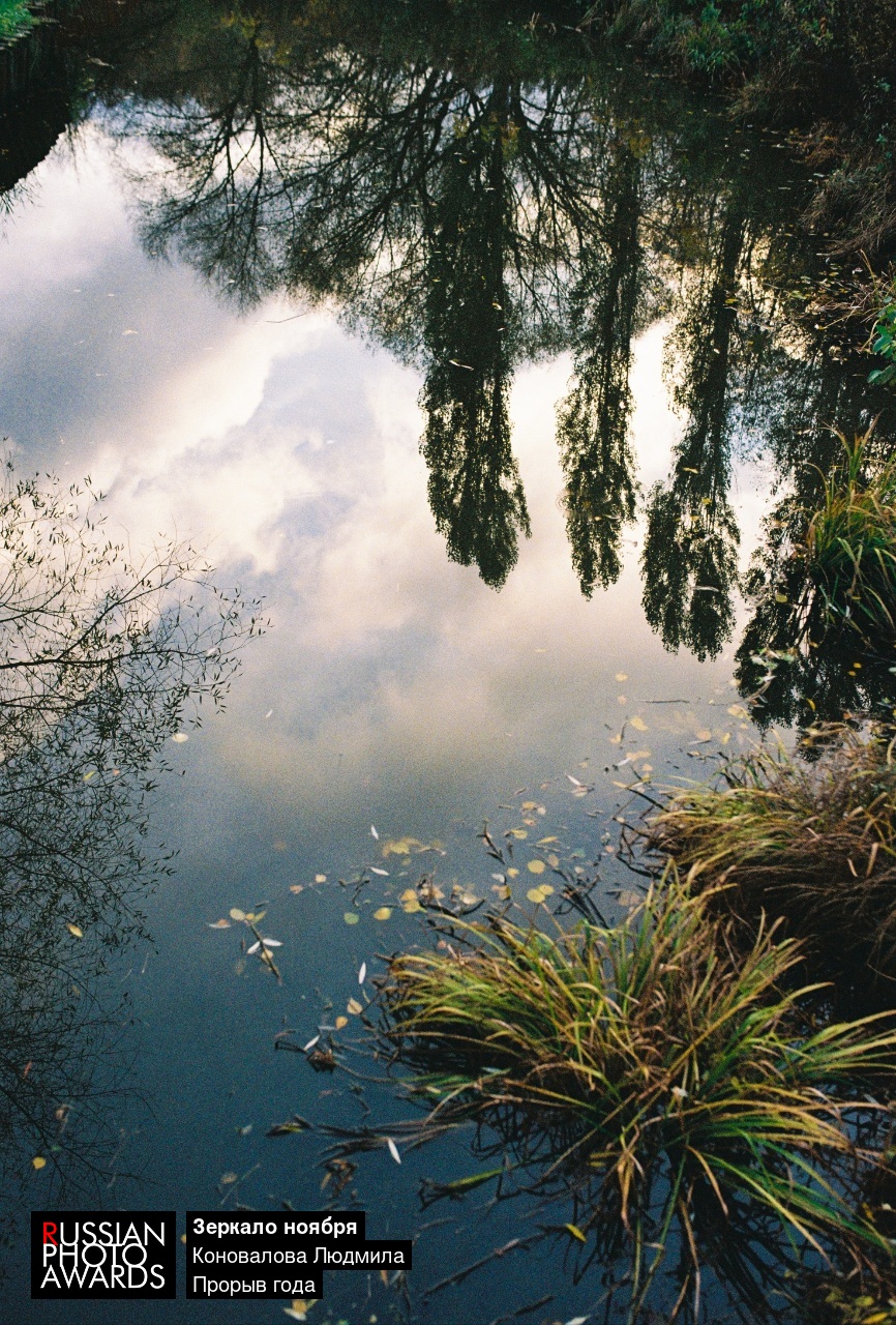 Глубокая вода, ставшая зеркалом для ноябрьского неба. Это не яркая и радостная, а глубокая меланхоличная осень, пойманная на пленку Kodak Ultramax