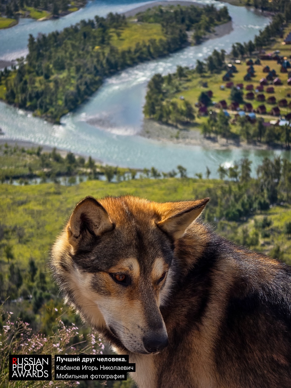 Этот пёс сопровождает туристов на пешей тропе к каменным грибам, которые находятся в урочище Аккурум в Горном Алтае. Сверху открывается,захватывающий дух вид на Чулышманскую долину, как раз на фоне которой фотография пёсика.