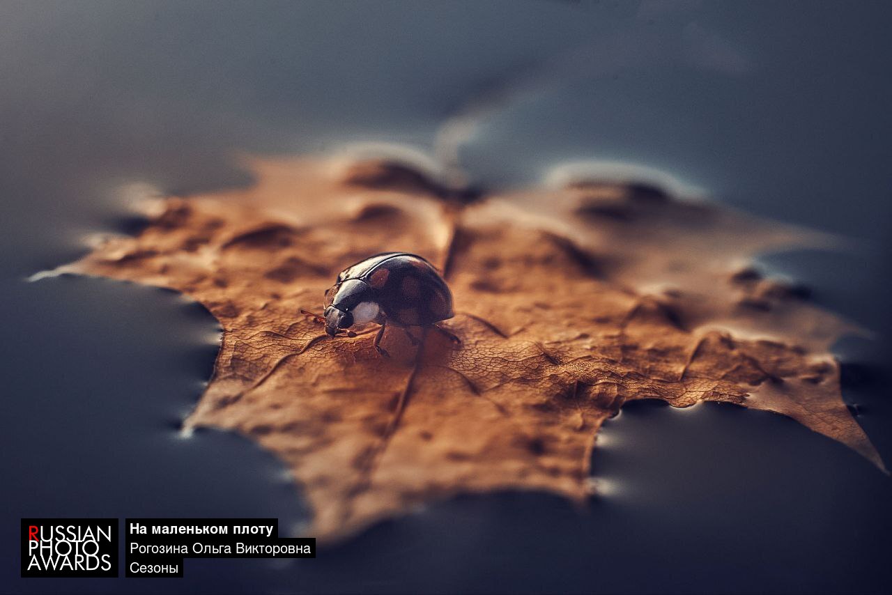 Каждый прожилок листа хранит в себе историю тёплого лета, а божья коровка, будто драгоценный камень, украшает этот природный шедевр. В этом кадре заключена целая вселенная — мир, где даже в преддверии зимы можно найти яркие краски и удивительные встречи.