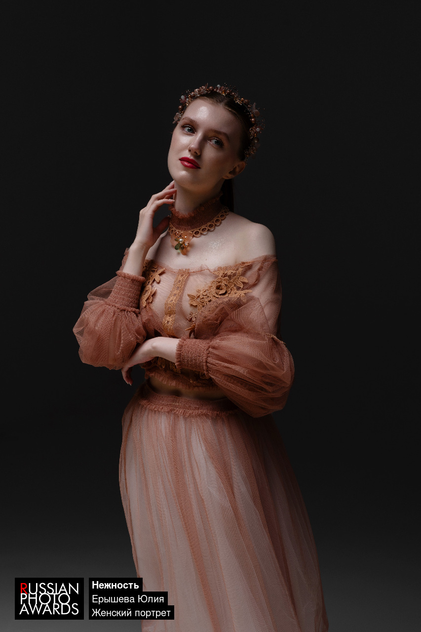 Работа снята с импульсным светом на циклораме, вариация портретов эпохи Возрождения.