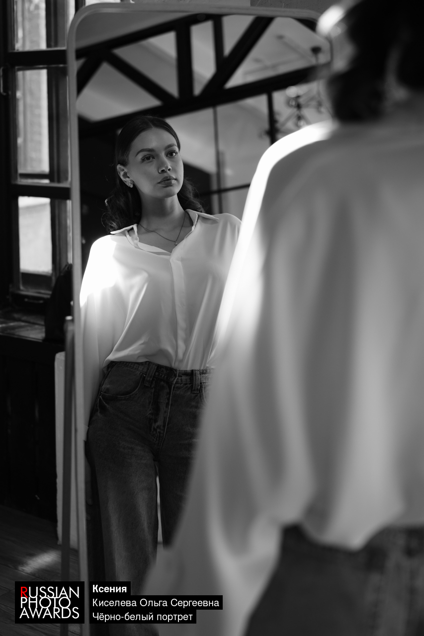 ч/б студийный портрет, снятый при дневном свете