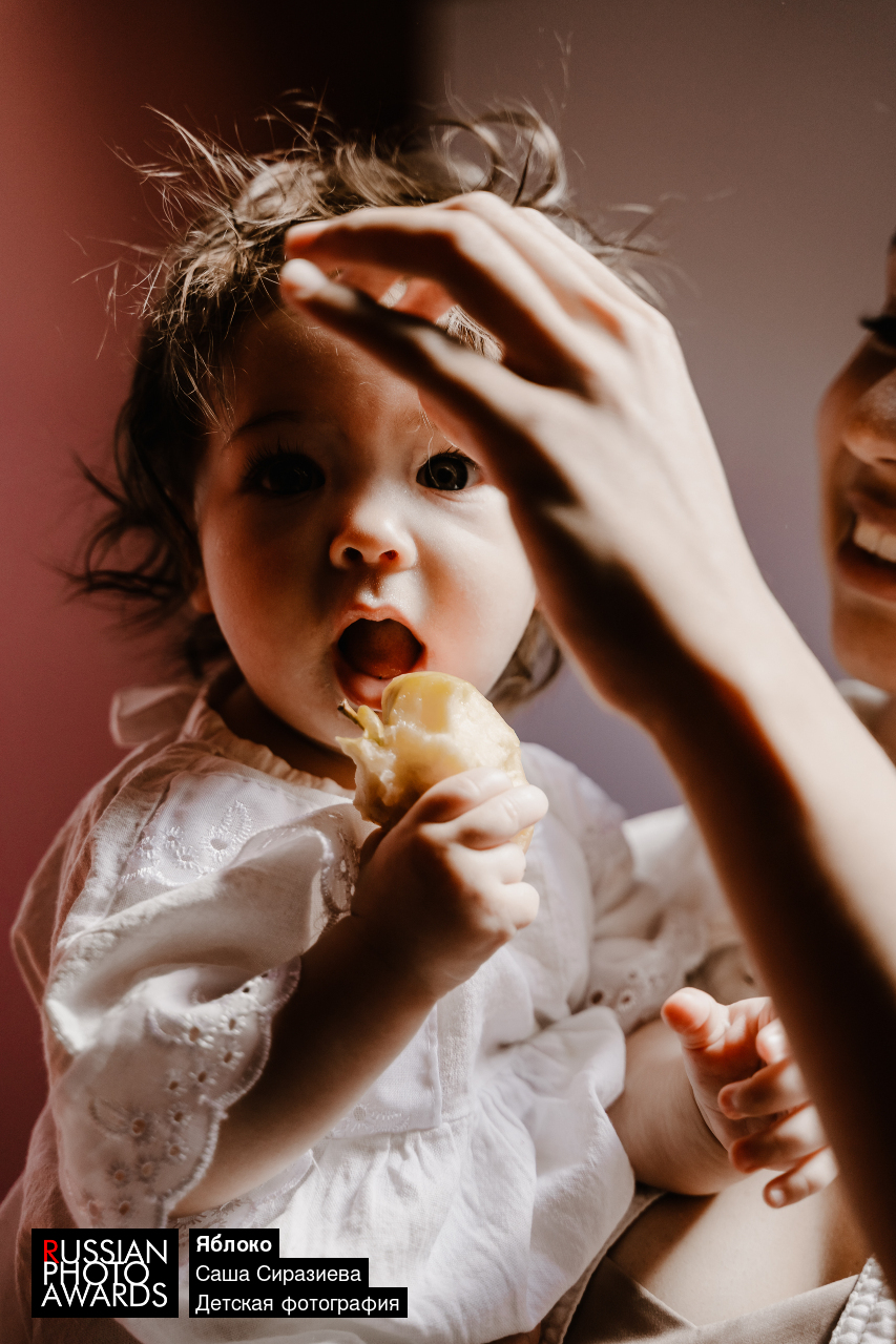 Поймала момент, когда малышка хотела укусить яблоко. Получилось забавно.