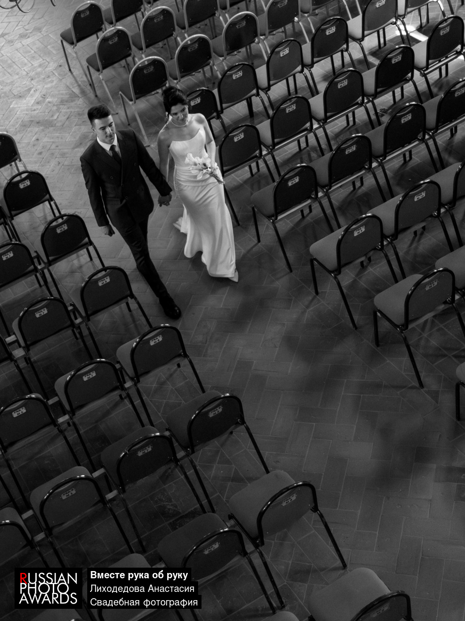 Путь начинается в тишине.. Геометрия стульев превращается в метафору дороги, а движение пары-в обещание идти рядом вместе по жизни.