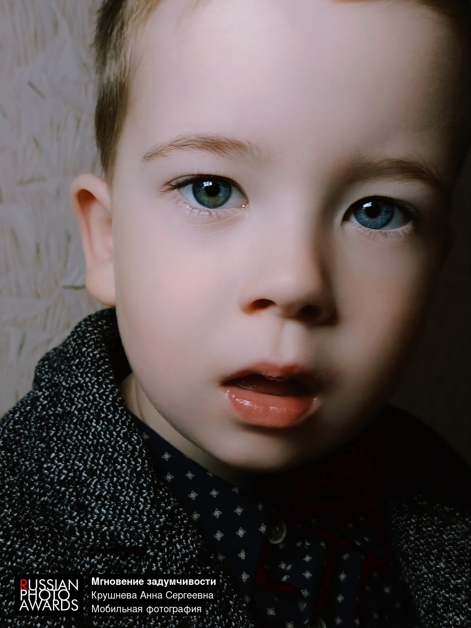 Кажется, что в глазах этого малыша спрятаны целые галактики. Его взгляд как портал в мир детских фантазий, где возможно всё. Этот снимок наполнен магией и детской загадкой.