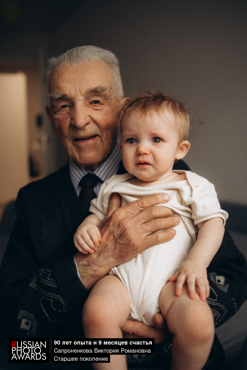Это трогательный снимок, который раскрывает глубокую связь между поколениями. На фото опыт прадедушки встречаются с нежностью и невинностью правнучки. Его добрые, наполненные переживаниями глаза и её сияющий взгляд символизируют уважение к прошлому и надежду на будущее.