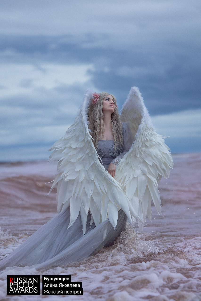 Хотелось показать светлую деву (ангел, лебедь, кто что видит) и суровость севера, холодное Охотское море, укутывающее своей силой.