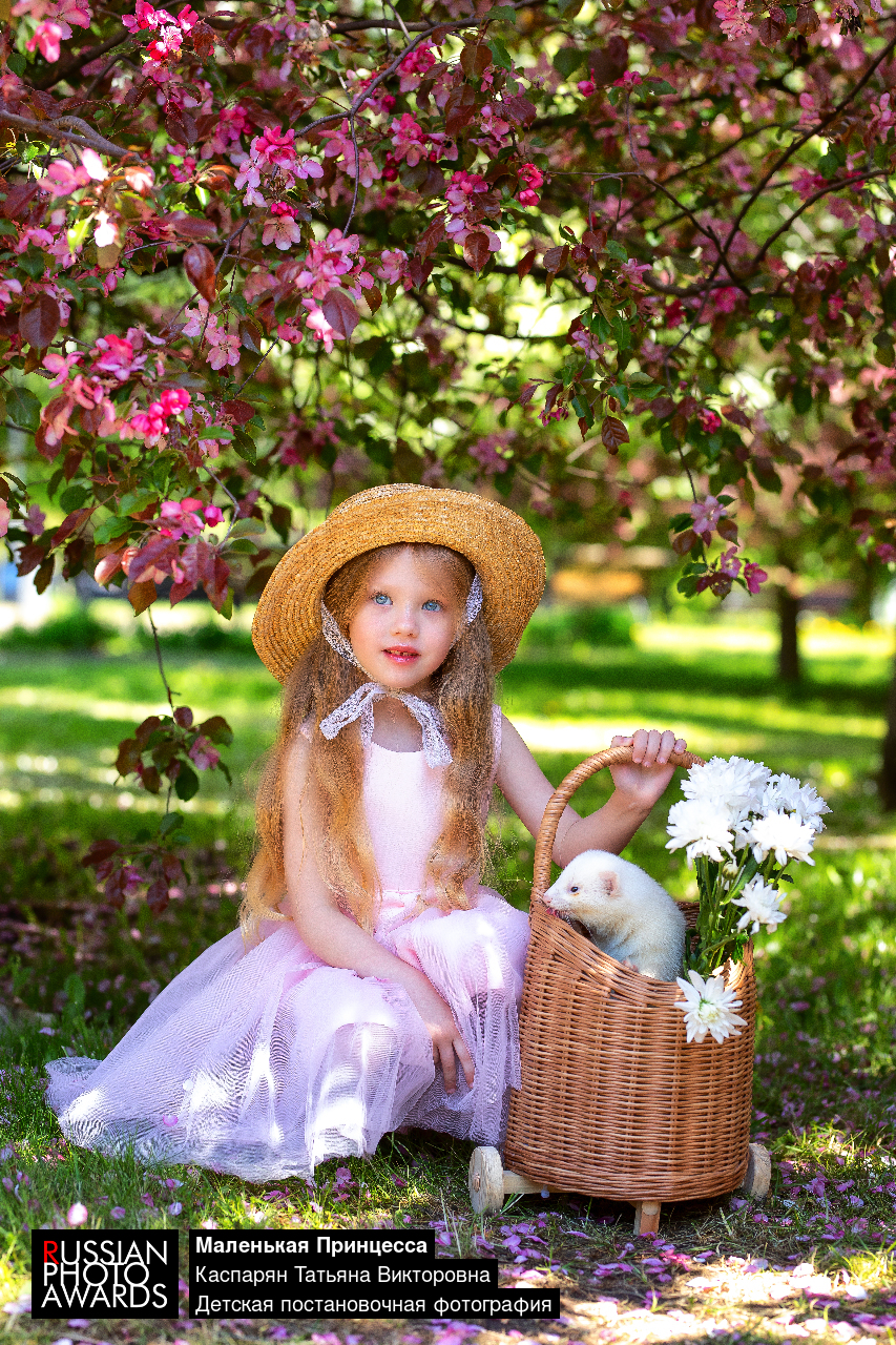 Весенняя съёмка маленькой Лизы с милым хорьком