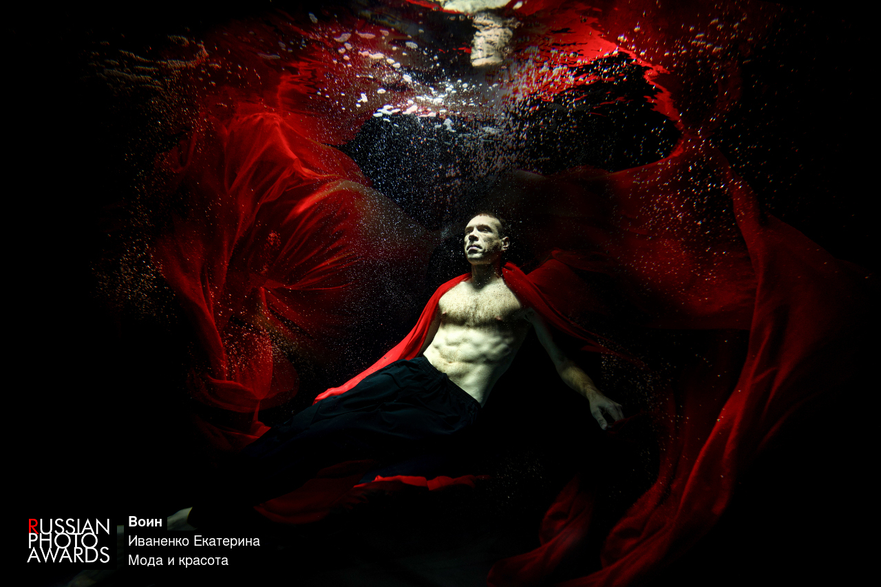 На фотогафии представлен подводный герой словно ожившая статуя, погружённая в свои мысли. Ткань вокруг него создаёт движение, вода обволакивает, а лицо остаётся безмятежным. Это история внутренней борьбы и спокойной силы, где эмоции проявляются через образ и пространство, а не через доспехи или венки. В образе угадывается архетип бога войны — герой мог снять с себя тяжесть сражения или наоборот погрузиться в медитацию перед боем. Однако что в действительности говорит нам эта работа - выбор рассуждения оставлен зрителю. Все элементы, утяжеляющие образ, исключены: нет доспехов, оков, мечей или венков на голове. Перед нами спокойный мужчина, настоящий воин в медитации. Иногда самые красивые вещи — самые тихие: если не отрываясь наблюдать за простым ночным небом, можно увидеть, как падают звёзды. Так и в этом кадре: эстетика и эмоция проявляются в малом, но чувственно сильном.