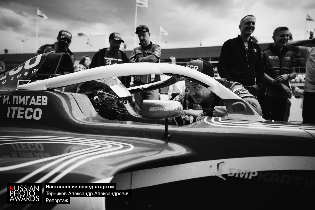 Разговор пилота с тренером на стартовой решетке. Открытие первого с 2019 года сезона Формулы-4 на автодроме Moscow Raceway. 17.05.2025.