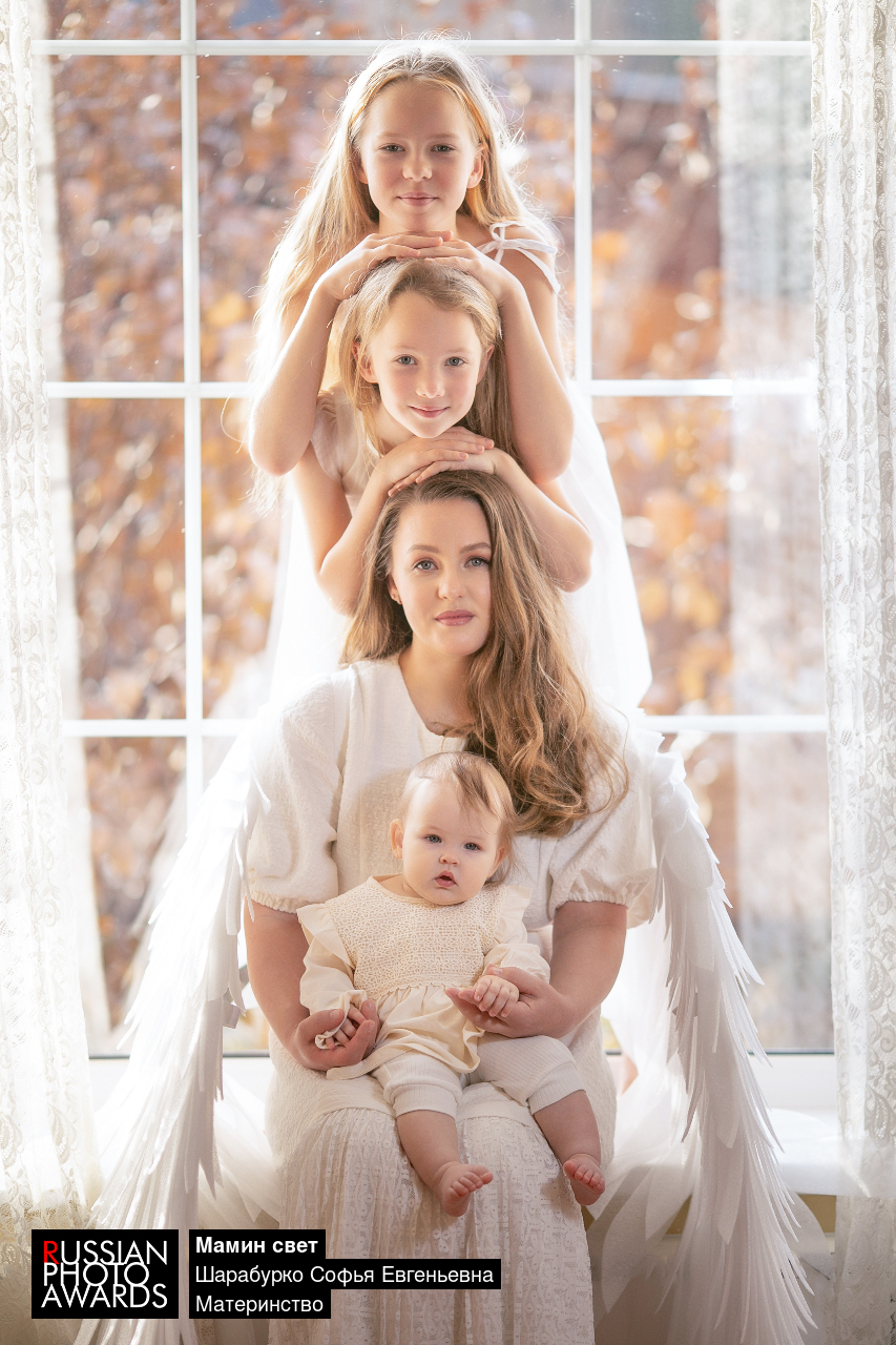 Семейная спонтанная фотосессия с самодельными крыльями подруги с ее детьми, четвертый за кадром - старший сын помогает держать лампу со светом, чтобы хоть немного перебить свет от окна:)