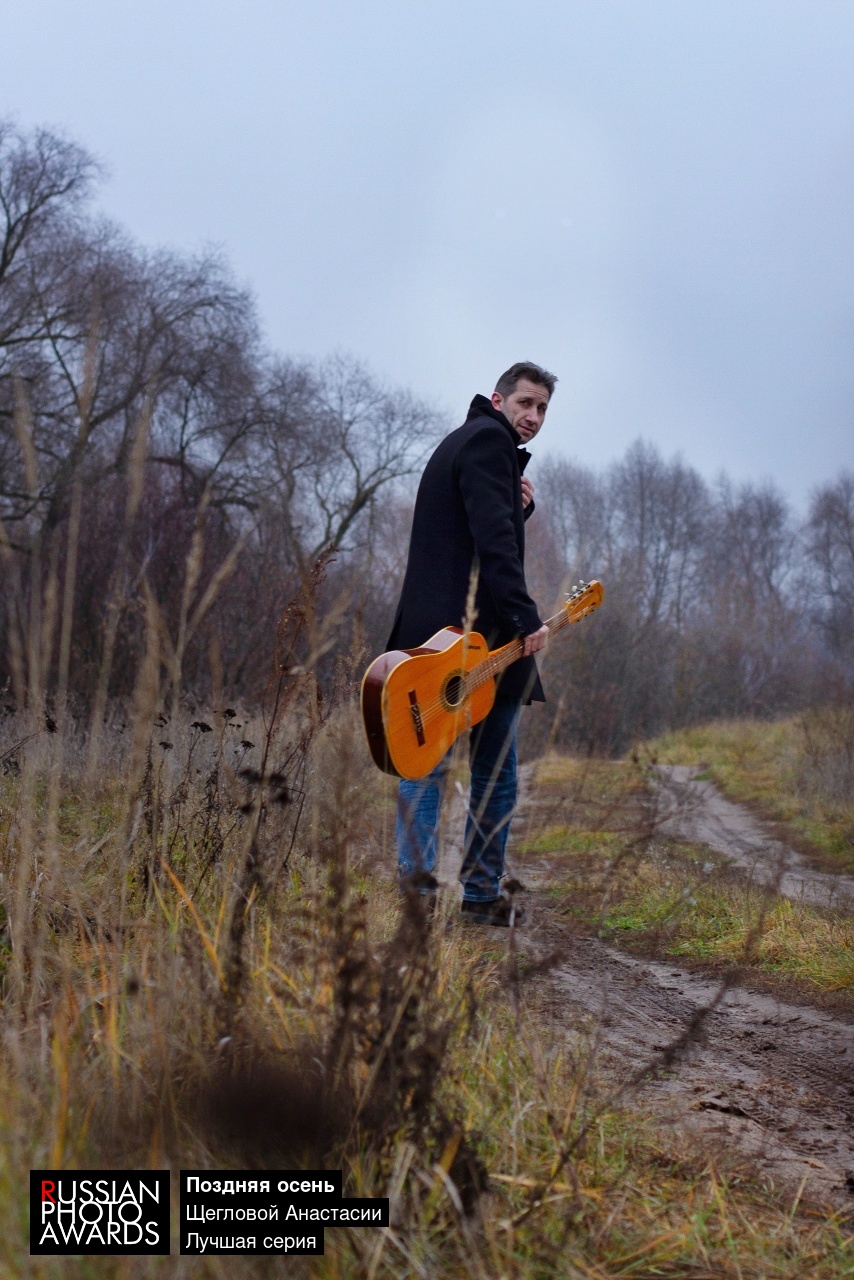 Давно хотела снять серию, передающую всю глубину чувства грусти и задумчивости, которая приносит нам осенняя пора. Идеальным дополнением к этой серии стала фигура мужчины с гитарой. Именно в таком образе я передала эмоциональный заряд, который хотелось запечатлеть на снимках: чувство одиночества, которое порой бывает приятным, ощущение замедления течения времени, и желания остановить мгновение, чтобы насладиться каждым моментом осеннего дня.