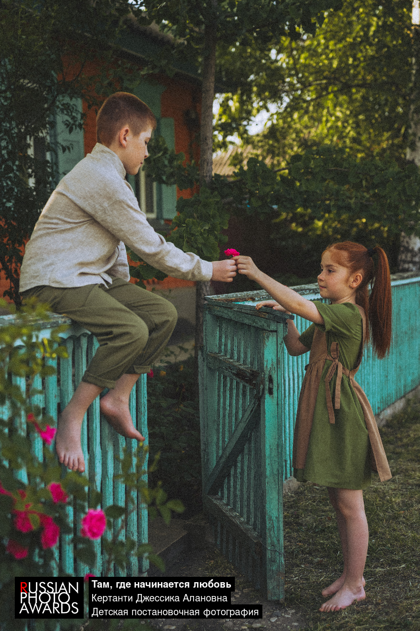 На фотографии - дети на фоне берез и старинного дома с деревянными ставнями проводят беззаботное лето.