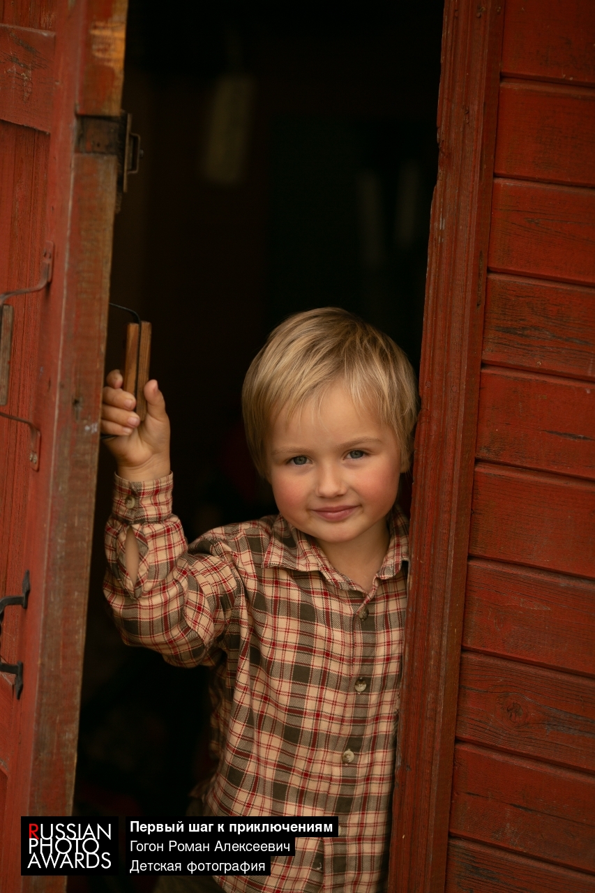 Мальчик, полный любопытства, медленно открывает дверь старого деревянного сарая. Попадая под мягкий свет осеннего солнца, он на грани открытия, готовый выйти в мир новых приключений.