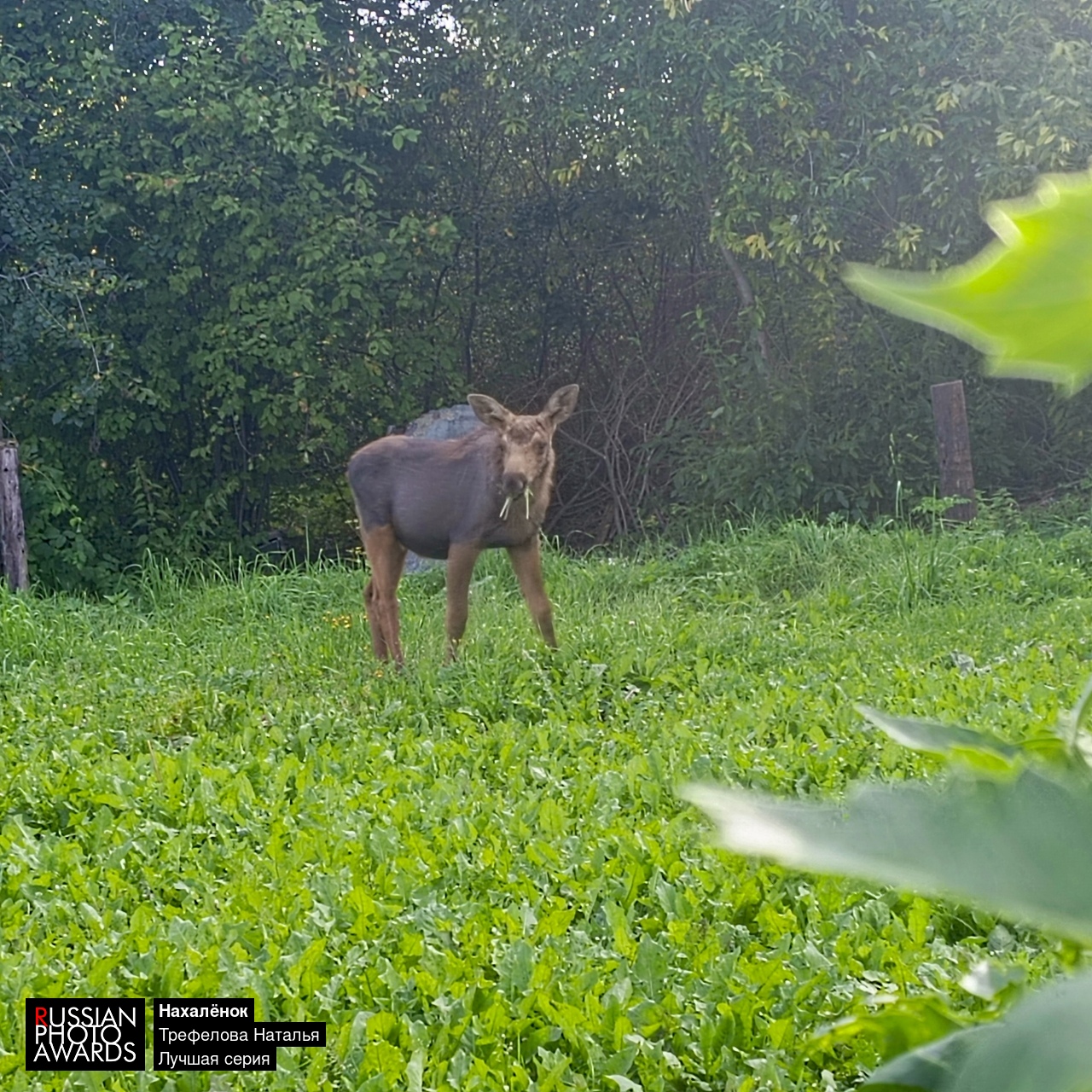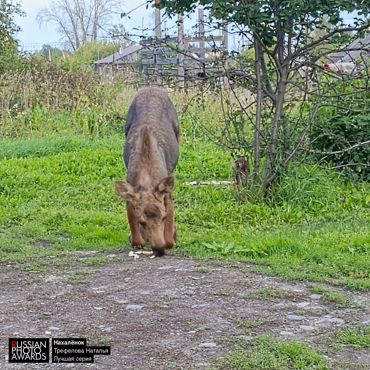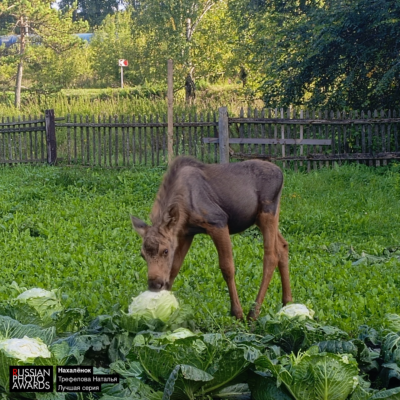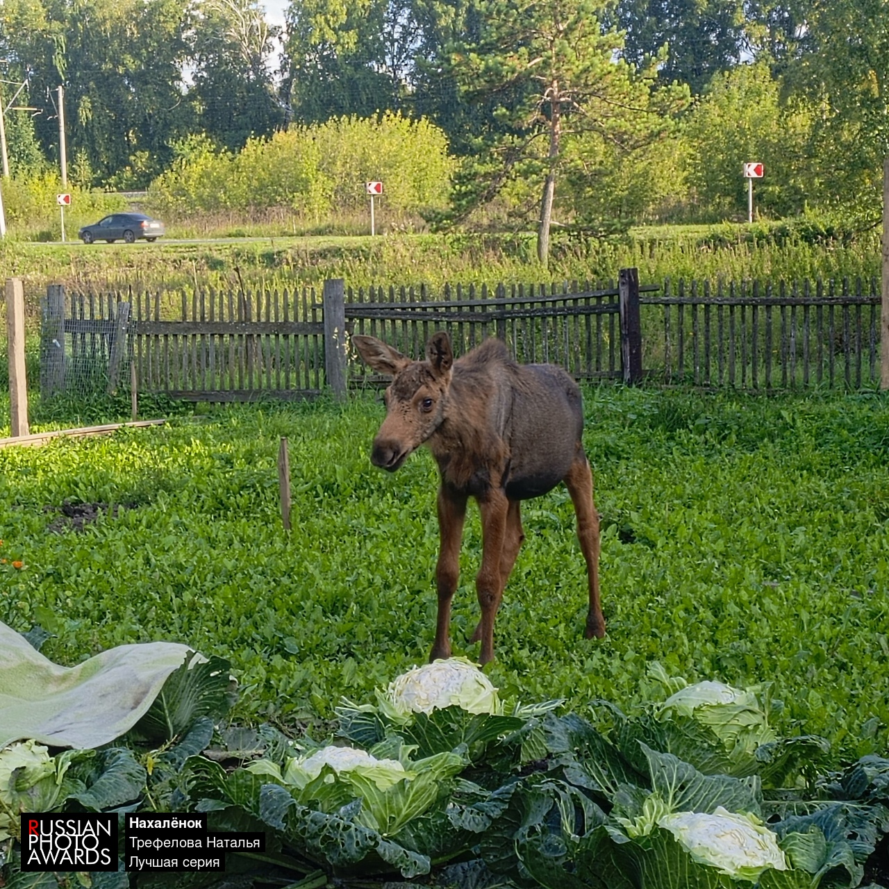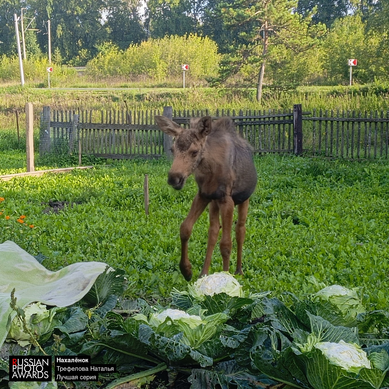 Фоторабота выполнена в августе 2025 года. Однажды утром мы обнаружили на своём участке вот такого незваного гостя, который пришёл полакомиться капусткой и яблочками. Вот такой нахалёнок!