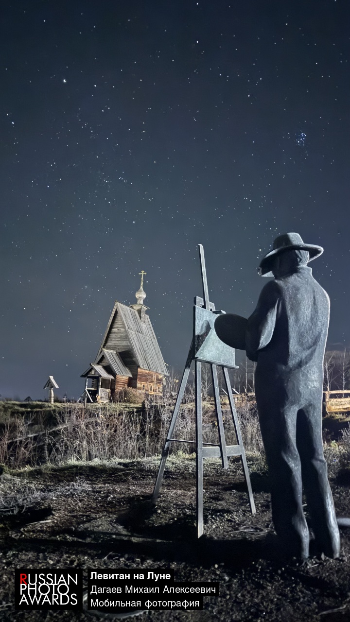 Плес , ноябрь, звездная ночь и место гле творил мастер . Гора Левитана, с нее открывается великолепный вид на Волгу, но долго вдохновением доя художника служила эта маленькая старая церковь …