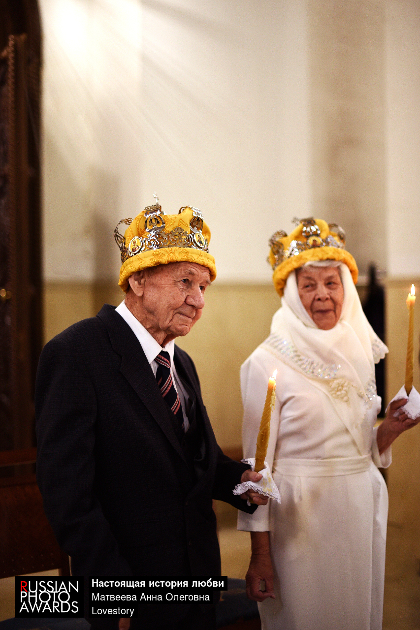 Для меня это настоящая история любви длиной в жизнь.Александру Филипповичу-99 лет, его жене Евгении Николаевне 90 лет.Вместе они прожили уже 68 лет.И с какой нежностью до сих пор смотрят друг на друга. На венчании собралась вся их большая и дружная семья.