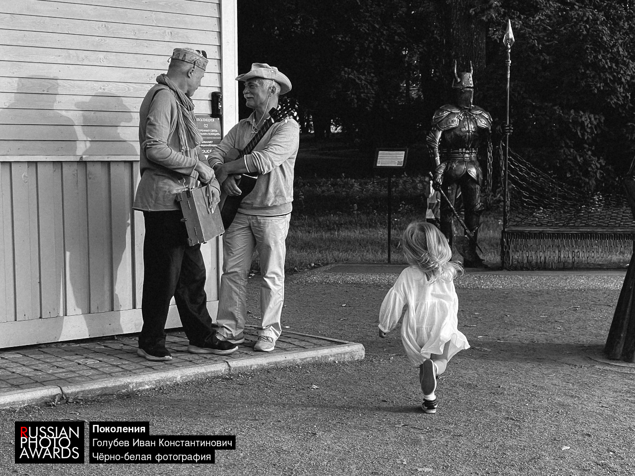 Маленькая девочка символизирует начало движения жизни, а два пожилых человека, воспоминания о прожитых годах.