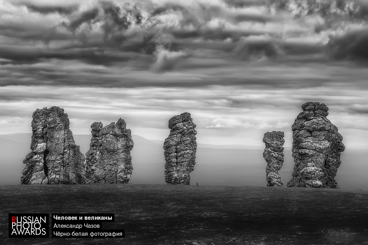 Человек кажется крошечным и ничтожным на фоне гигантских каменных останцев на плато Маньпупунер.
