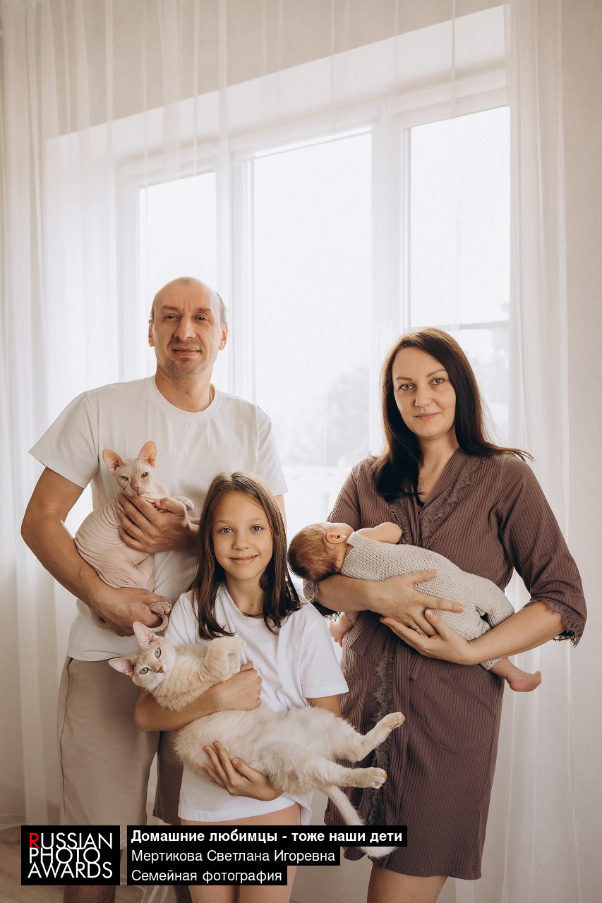 Любимые домашние животные - это тоже наши дети, поэтому семейное фото без них было бы неполным
