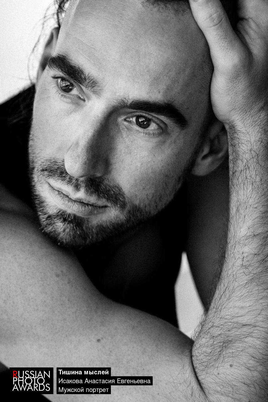 На этом портрете мужчина словно застыл во времени, погружённый в свои размышления. Монохромная гамма усиливает драматизм сцены, а поза и выражение лица рассказывают о внутренней борьбе и поиске решений