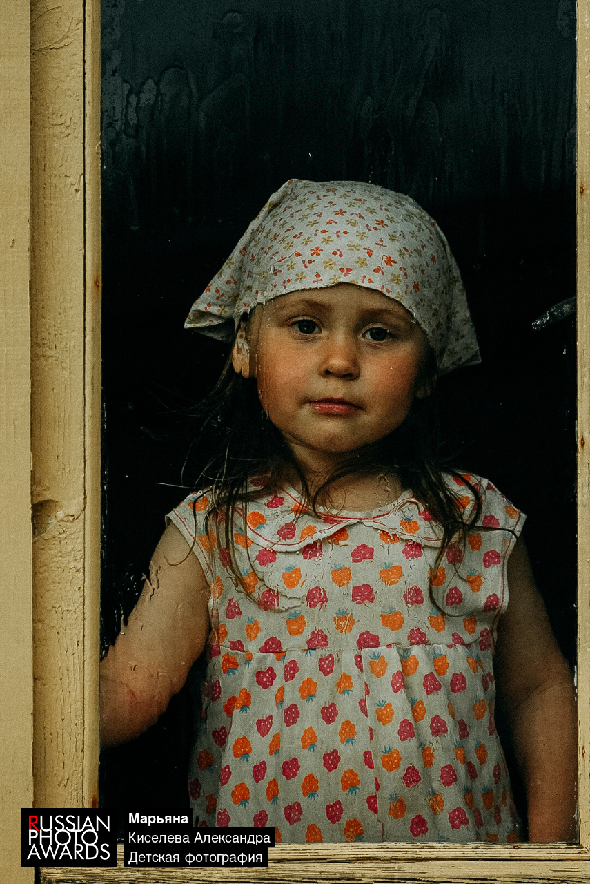 Приехали к бабушке в деревню. Полил сильный дождь и загнал всех домой. Марьяна подбежала к окну и стала смотреть, как дождь стучит по стеклу. Я взяла фотоаппарат и выбежала под зонтом в огород, чтобы поснимать ее через окно.