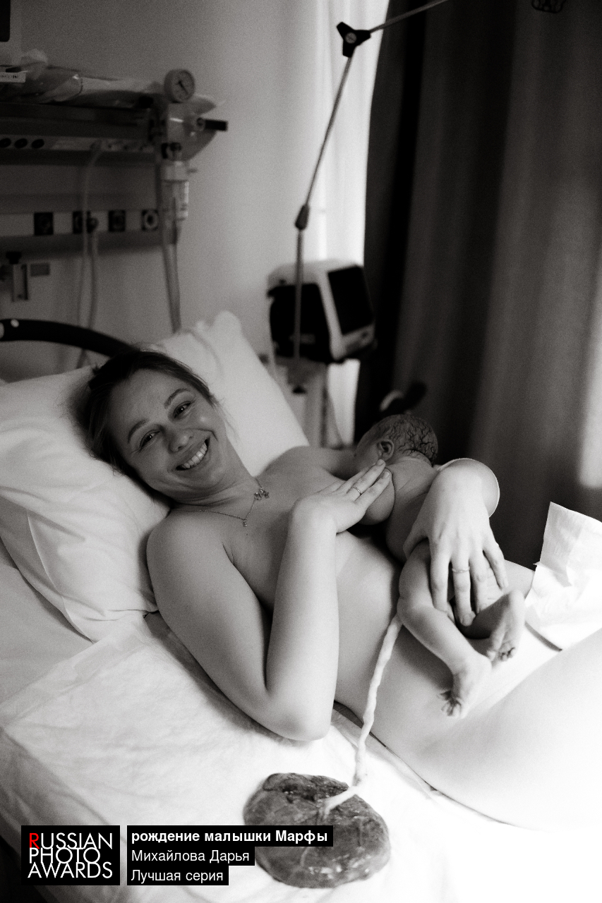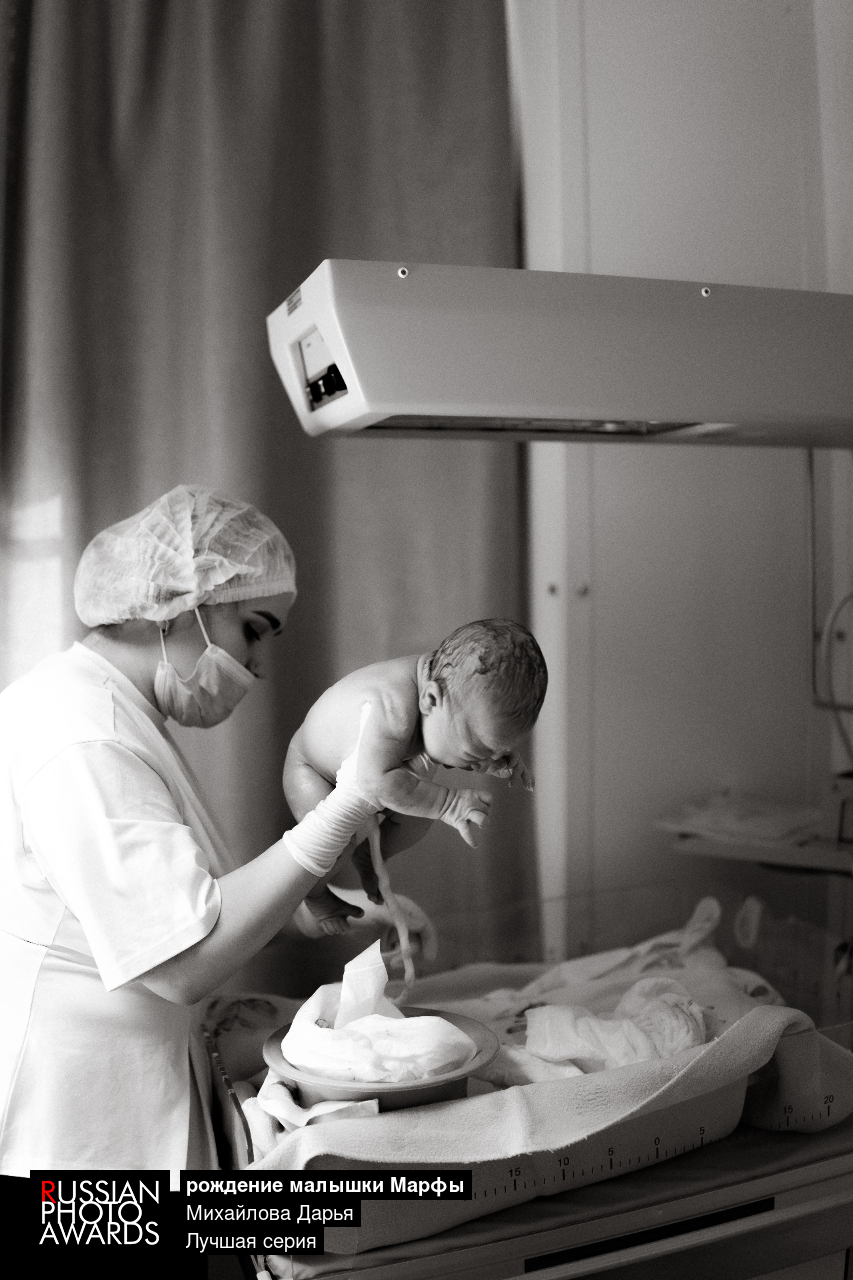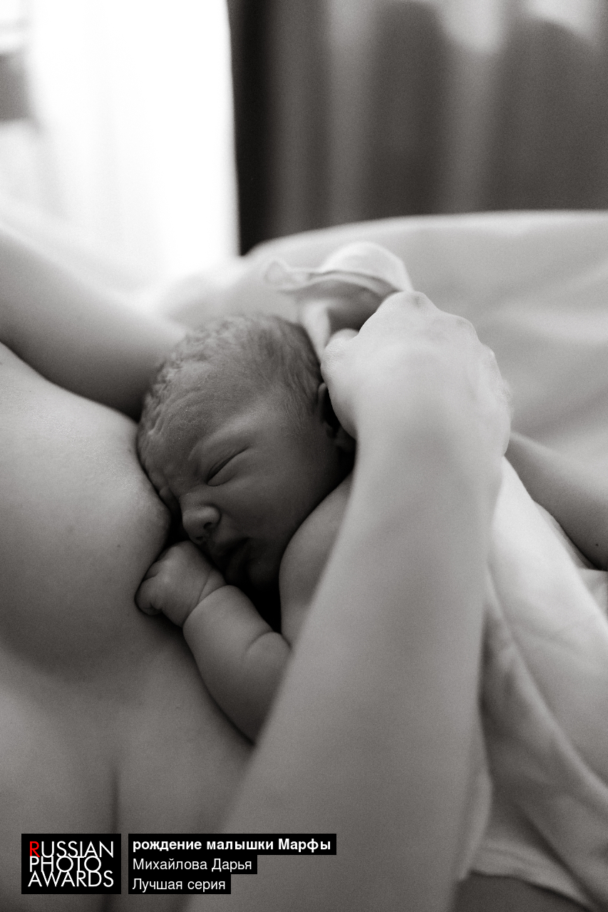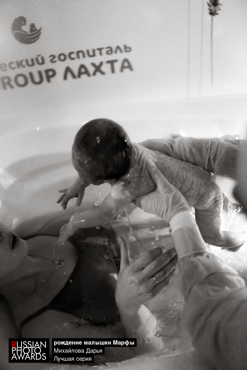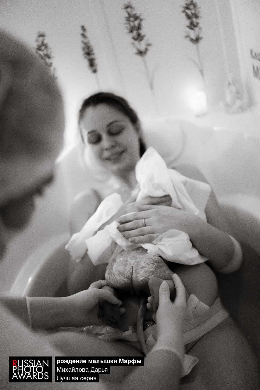 В 13:36 Марфа появляется на свет — в воду, мягко, быстро, красиво и естественно. Приглушенный свет, спокойная музыка, профессиональная команда, все как мечтала её мама.