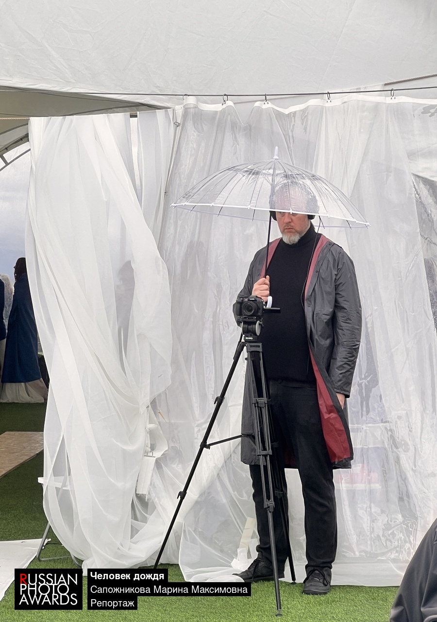 Серьезный оператор на важном мероприятии. Ничто не мешает ни ветер ни дождь