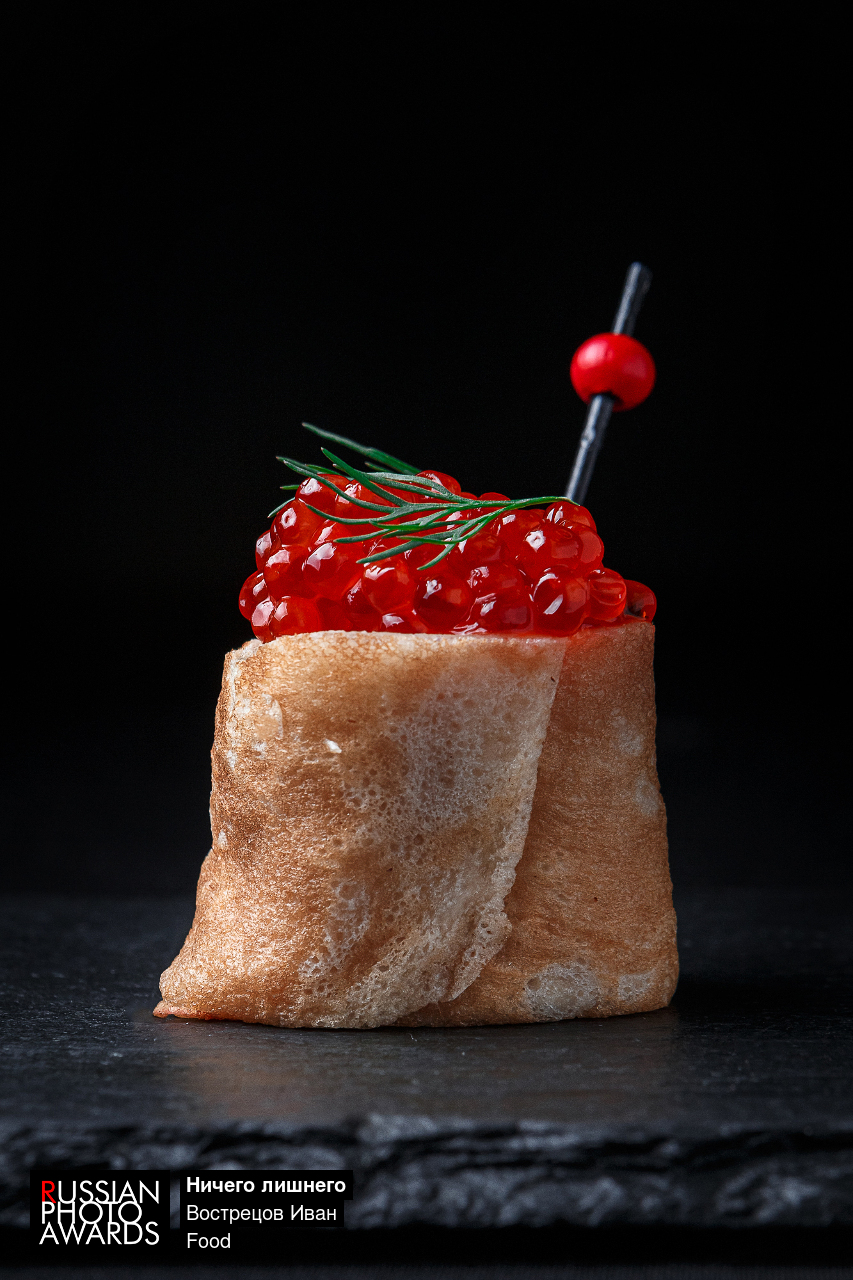 Работа могла бы называться "Ничего личного", но это было бы слишком вызывающе. Шучу конечно. А вообще в современной русской традиции блины и икра идеально сочетаются, а большего и не надо.