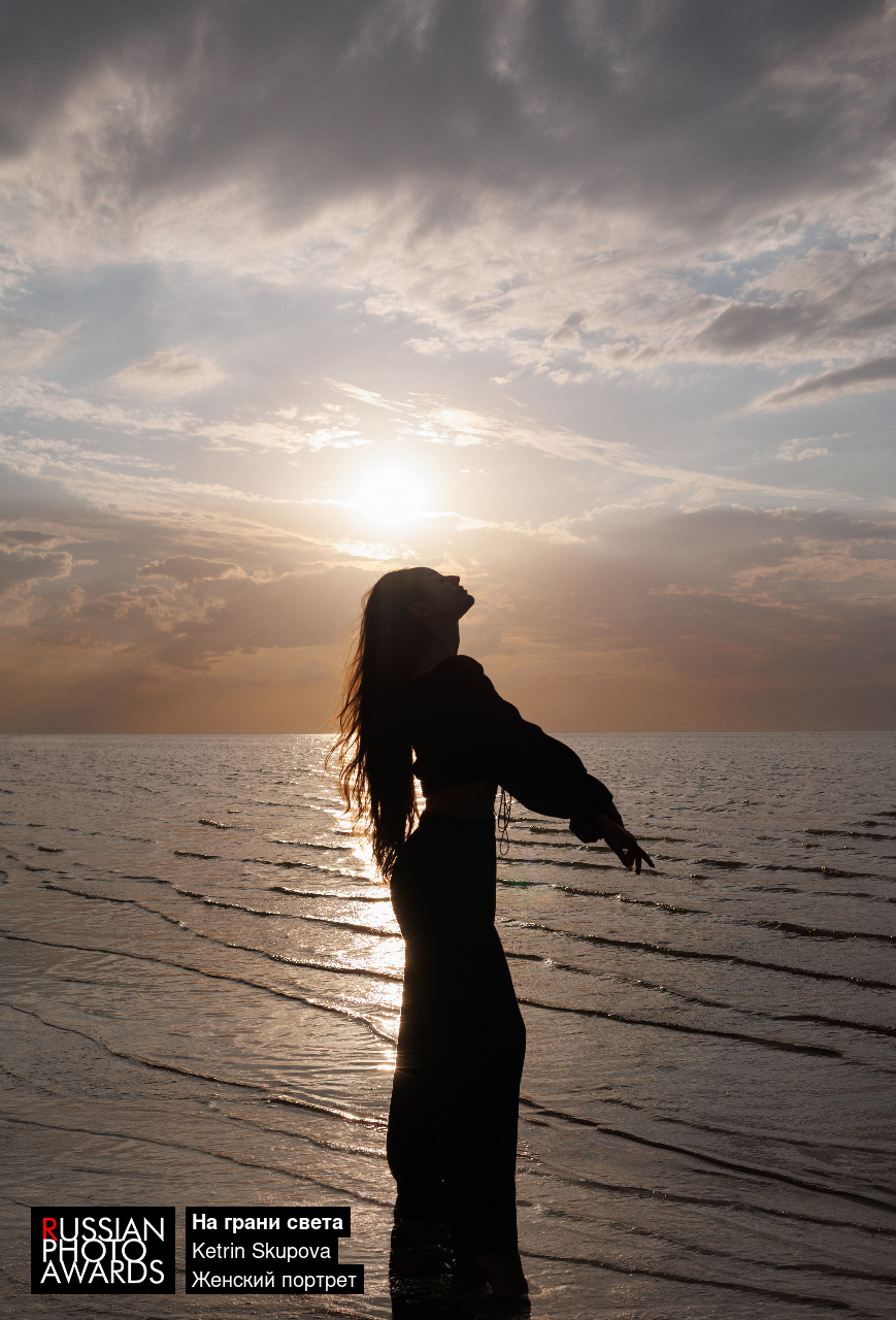 Её силуэт, растворяющийся в закате... Мгновение, когда тьма и свет соприкасаются, а человек становится их мостом. Силуэт у моря словно застывает между днём и ночью, в точке, где рождается новое ощущение свободы и внутренней силы.